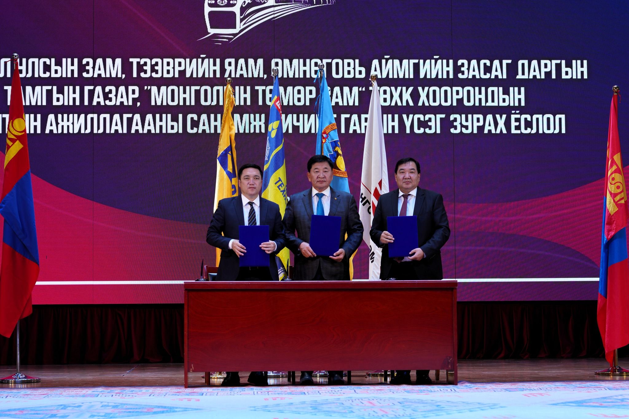 - Зам, тээврийн яам, “Монголын төмөр зам” ТӨХК, Өмнөговь аймгийн Засаг дарга нарын хооронд Хамтын ажиллагааны гурван талт санамж бичиг